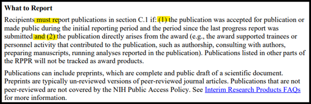 Publications should always be included in the RPPR when they meet the criteria in 6.3 Section C – Products of the RPPR Instruction Guide.
