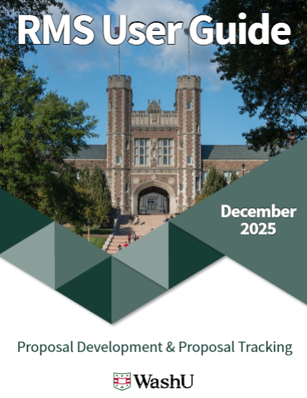 Updates to this guide are maintained by the Office of Sponsored Research Services and Research Education & Information. The next revisions will include changes to reflect the RMS System Upgrade on 12/12/2025. If there are specific sections of the guide you would like to see updated, please send your requests to ovcrinfo@wustl.edu.