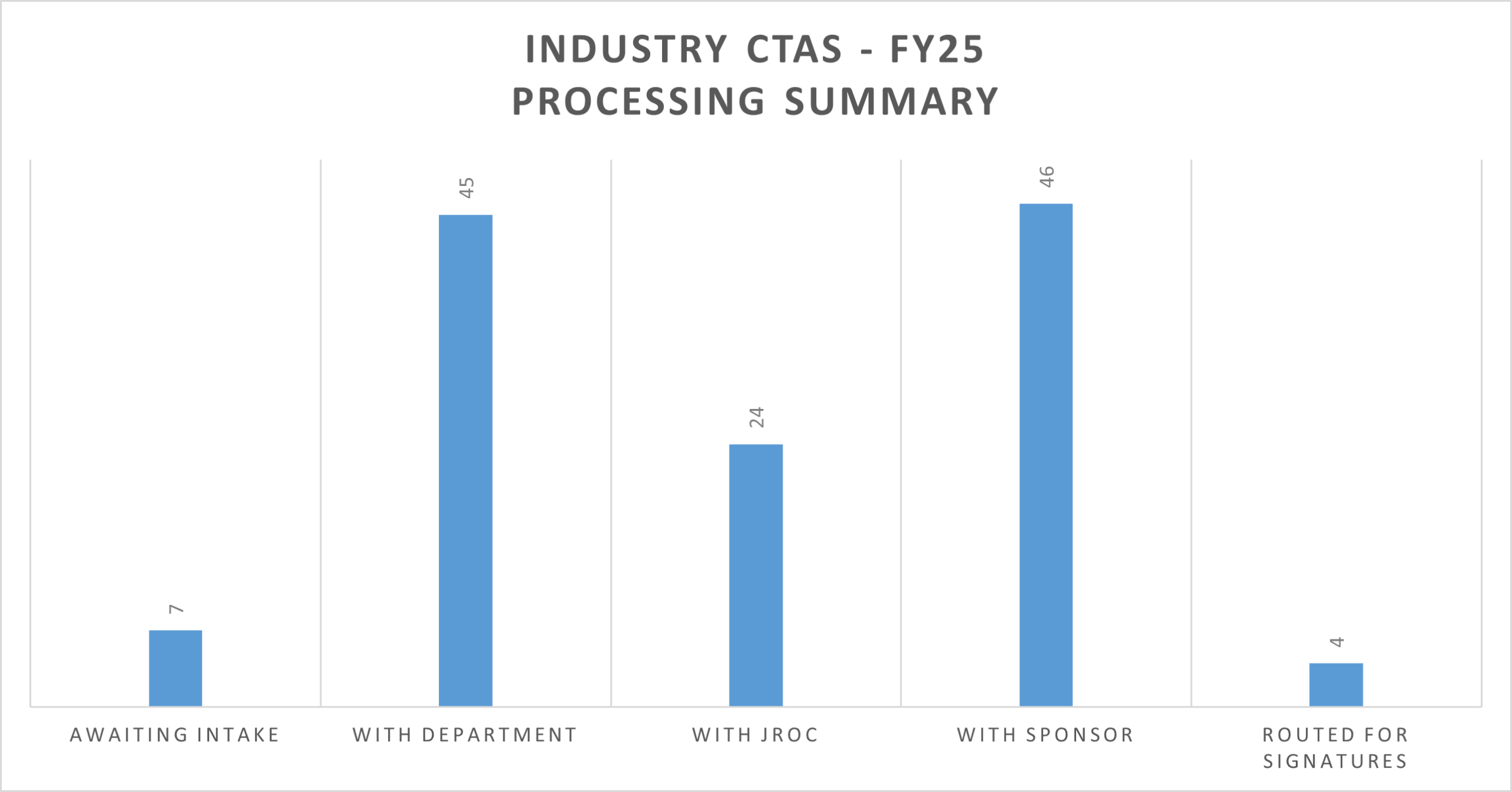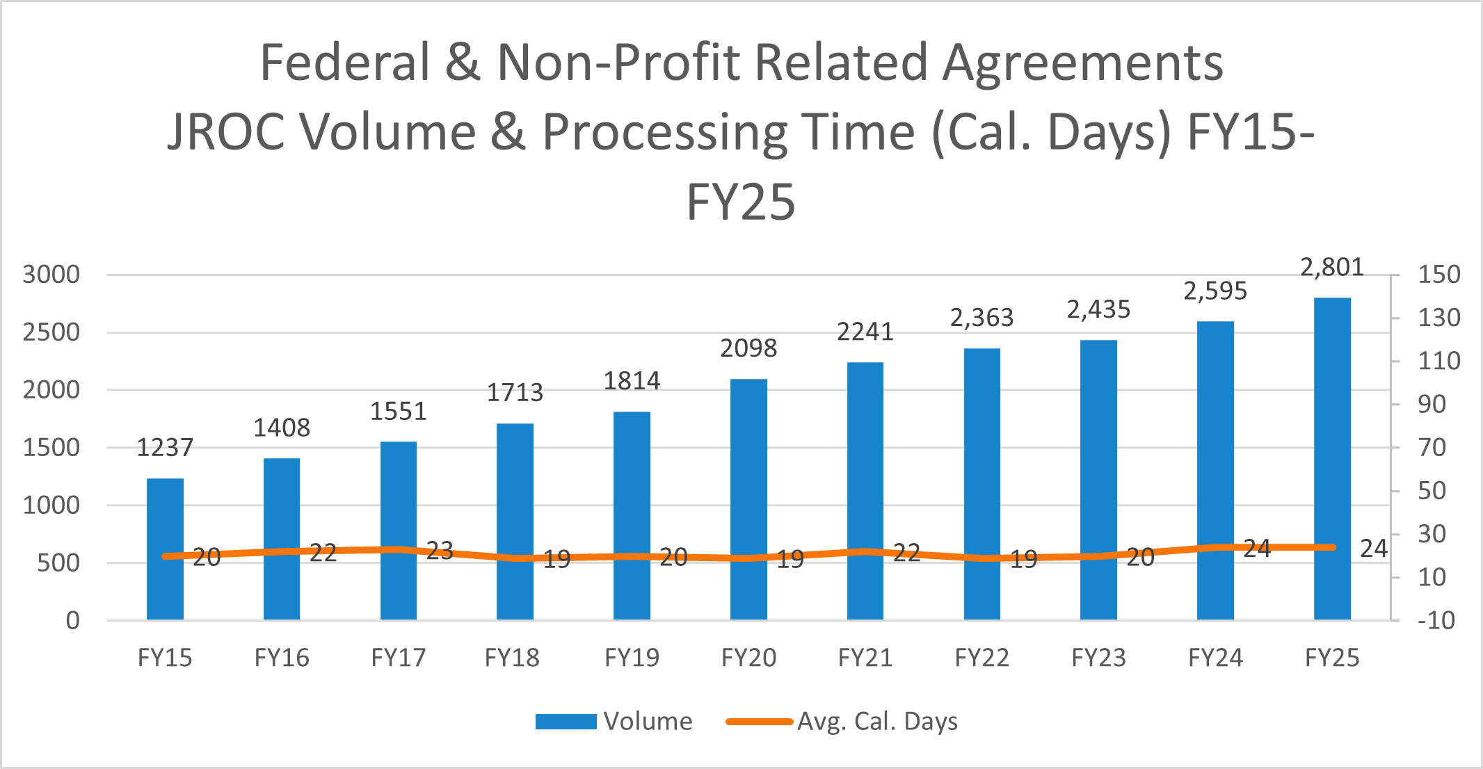Routed for Department/Sponsor Signature represents the average days required to collect PI and Sponsor signature after JROC has signed.